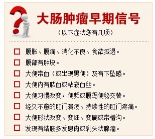 癌腫破潰感染症狀:粘液膿血便。症狀出現(xiàn)頻(pín)率:便血80&md  ¥ash;90%,便頻(pín)60&md  €♣ash;70%,便細 40%,粘液  < 便35%,肛門(mén)疼痛2€≤0%,裡(lǐ)急後重20%,便秘10%。