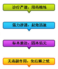 | 2、優勢:辨症施治,個(gè)體(tǐ)化(huà)治療€→,打破了(le)傳統單一(yī)的(de)治療模式,具有(yǒu)₩§起效快(kuài)、安全 、全面、無毒副作(zuò)用(yòng)¥✘∑、臨床效果極佳。 |