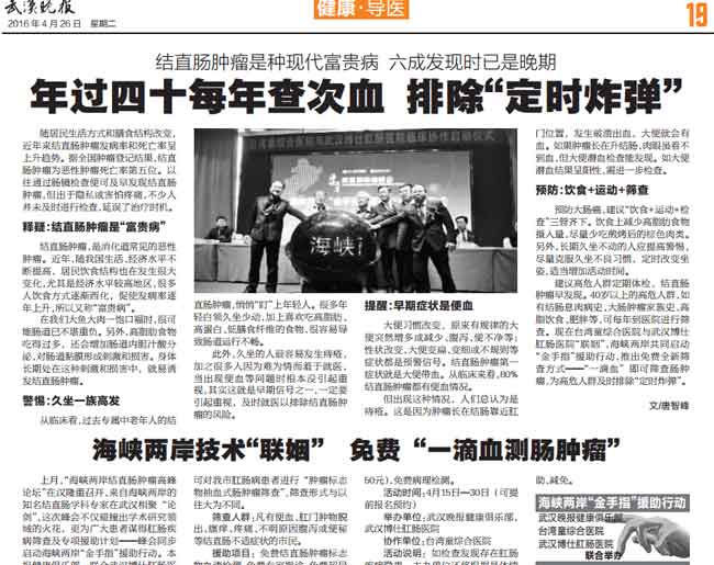 [武漢晚報(bào)]年(nián)過四十每×δδ↔年(nián)查次血 排除結直腸腫liu