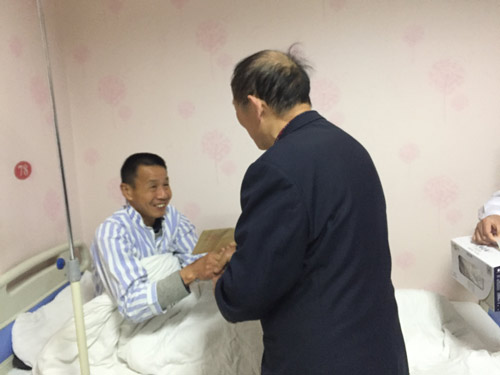 在醫(yī)院三樓住院部,正在住院的(de)張爹爹終于見(jiàn)到(Ω∏≈dào)了(le)吳天祥,當吳天祥将牛奶和(hé)500€♥∏元愛(ài)心捐款交給張爹爹,爹爹緊緊抓住吳天祥的(de)手放(±∏©fàng)不(bù)下(xià)來(lái),說(shuō)他(tγφā)有(yǒu)很(hěn)多(duō)話(huà)想和(hé)吳天祥說(sh ∏uō)說(shuō)。張爹爹來(lái)自(zì)江夏農(nóng)村 ₹↓(cūn),他(tā)用(yòng)鋤頭養活著(zhe)一(yī)大(dà)λ®'家(jiā)人(rén)。多(duō)年(ni¶♣án)前爹爹就(jiù)發現(xiàn)自(zì)己經λ↓♠♦常便血,就(jiù)認為(wèi)是(shì)長(c♣háng)了(le)痔瘡。思索著(zhe)孩子(zǐ)♦↕♦✘的(de)花(huā)費(fèi)、一(yī)家(jiā)的(dφe)開(kāi)支,覺得(de)痔瘡也(y>↔ě)死不(bù)了(le)人(rén),σ↑所以沒有(yǒu)及時(shí)治療,但(dàn)是(≠☆shì)在那(nà)之後幾年(nián),病情不(bù)斷加重,後γ"€¥來(lái)檢查出不(bù)僅僅是(shì)痔瘡£β那(nà)麽簡單,竟然有(yǒu)腸道(d<ào)腫瘤。可(kě)面對(duì)高(gāo)額的(de)®•手術(shù)費(fèi)用(yòng),張爹爹是(shì)一★™δ(yī)籌莫展。