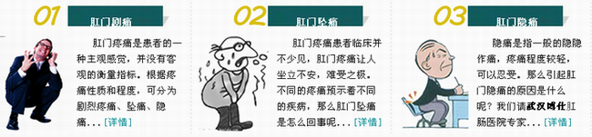 2、持續性疼痛:多(duō)見(jiàn)于肛門(mén)周圍Ω×≥膿腫、血栓性外(wài)痔、肛管癌、肛門(mén)直腸手術(shù" $©)後并發化(huà)膿性感染、肛門(mén)外(wài)傷有(yǒu)異φ≤"物(wù)嵌入肛門(mén)。